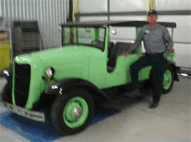 making all the pieces come together." The classic pictured above is described as a "truckster" because it is a combination of a truck and a car. It is titled as a 1931 with parts from both 1931 and 1936 Fords. Many of the parts had to be hand made. |